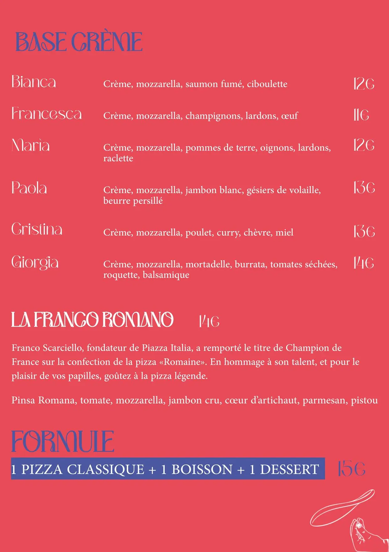 Chez Piazza Italia, chaque menu a été imaginé pour allier plaisir, simplicité et saveurs authentiques. Que vous ayez envie d’un grand classique, d’une touche d’originalité ou d’un petit moment sucré, il y a forcément une formule faite pour vous.